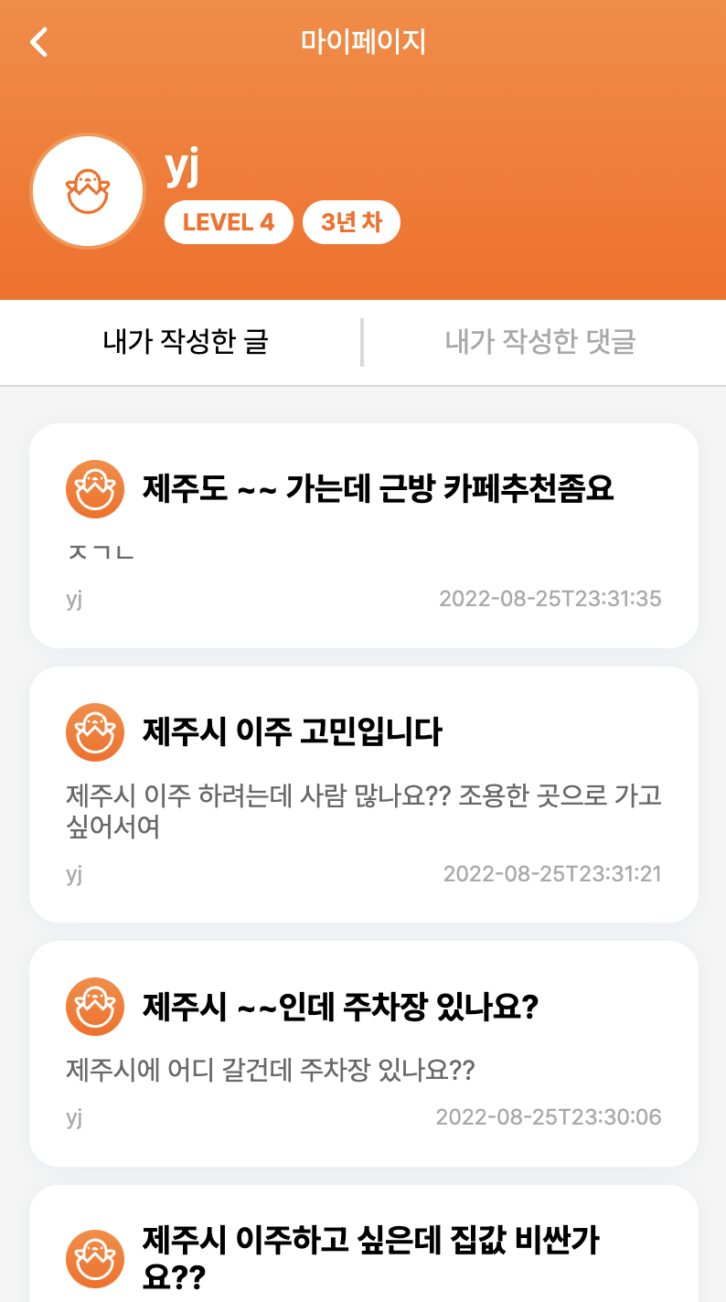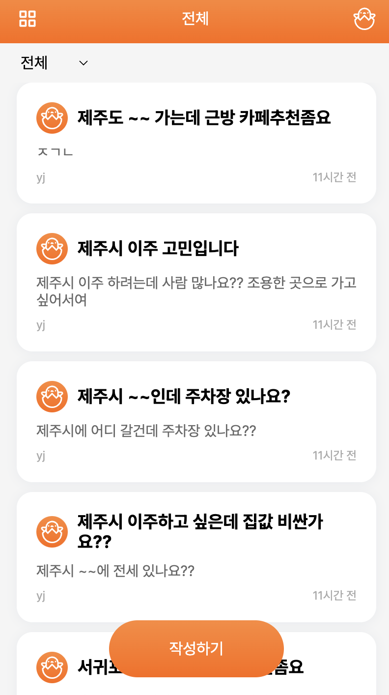 🍊 제식인 ( = 제주 지식인 ) 제주살이를 원하는 사람들의 신중한 결정을 도와주는 질의응답 커뮤니티 서비스 🍊 배포 사이트 📅 프로젝트 기간 2022.08.24 ~ 08.26 (2박 3일) 💻 팀원 소개 김영진(FE) 이자윤(FE) 신지환(BE) 한수민(Design) 🎥 데모 영상 default.mp4 ✨ 서비스 소개