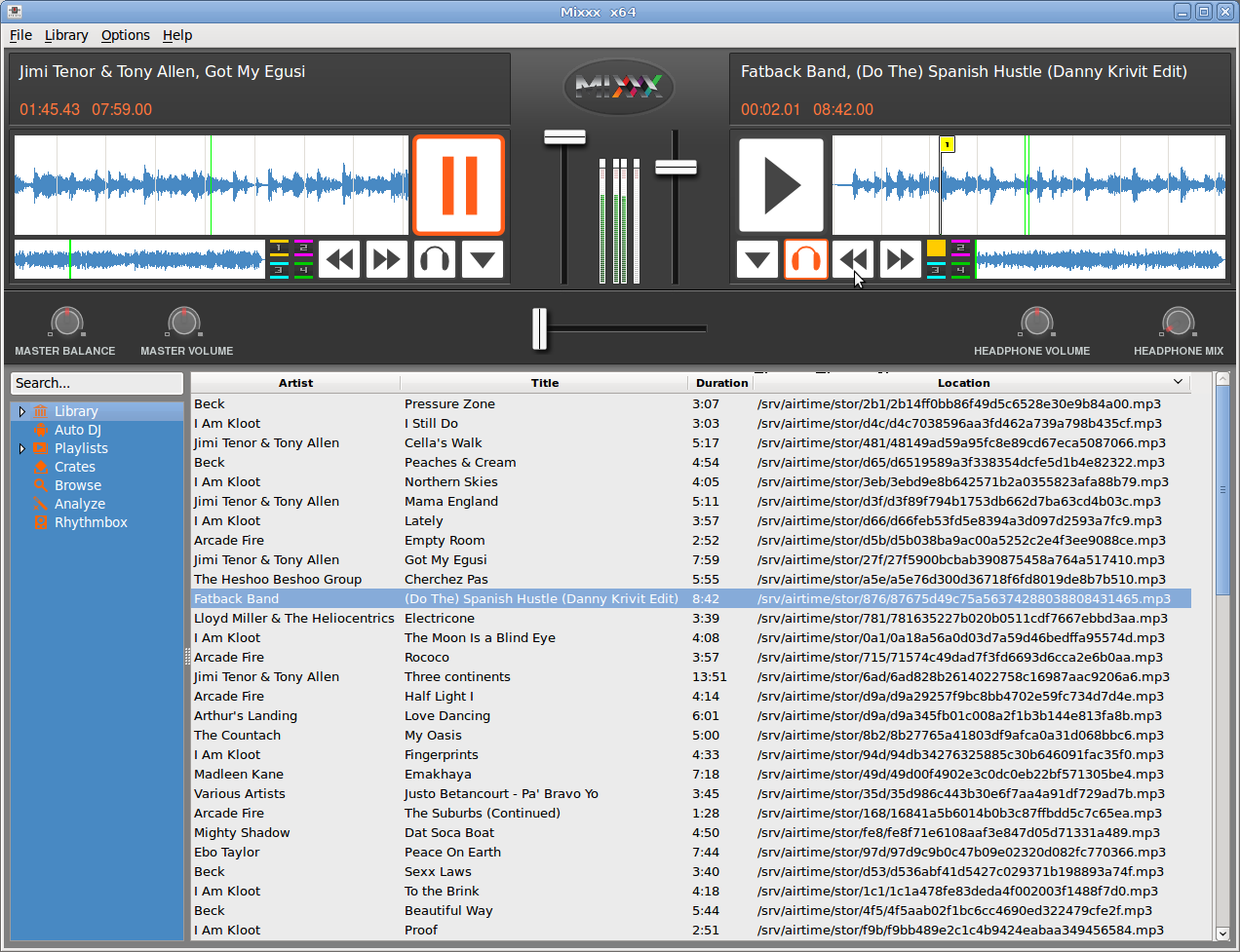 Then, start Mixxx and select the Airtime skin by clicking Options, Preferences, then Interface in the Mixxx main menu.