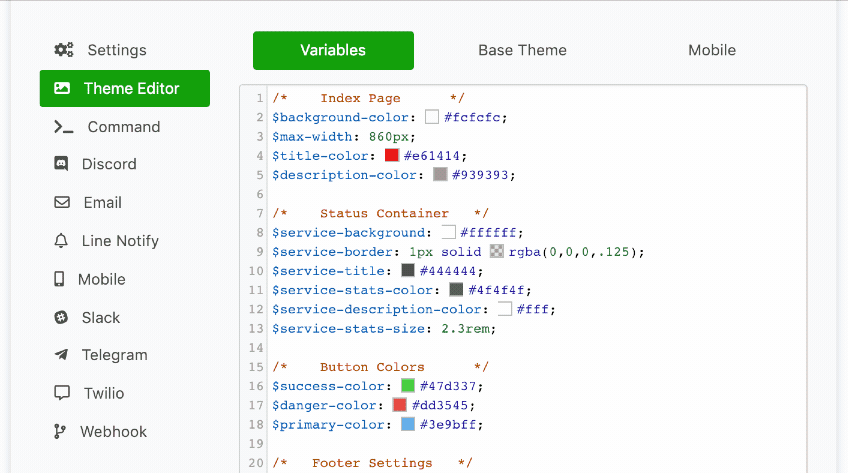 Statping will allow you to completely customize your Status Page using SASS styling with easy to use variables. The Docker image actually contains a prebuilt SASS binary so you won't even need to setup anything!
