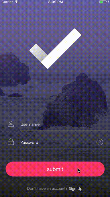 : a completion block to be called once the animation finished, it may be useful to transit to another view controller, example transit to the home screen from the login screen.