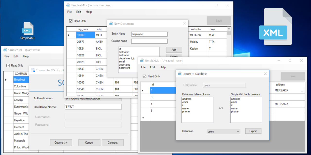 , allowing the user to easily manipulate the simple Document and export it to either one of those file formats or to an existing database table.