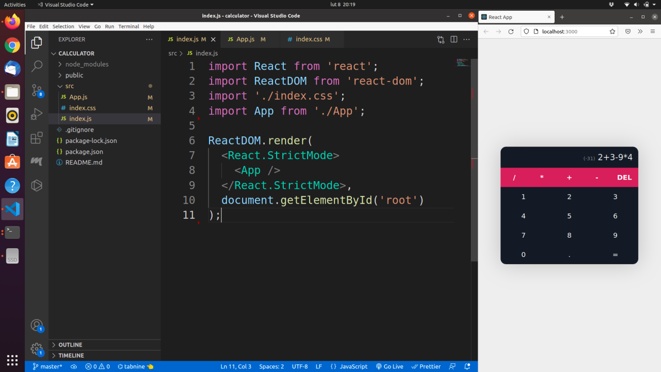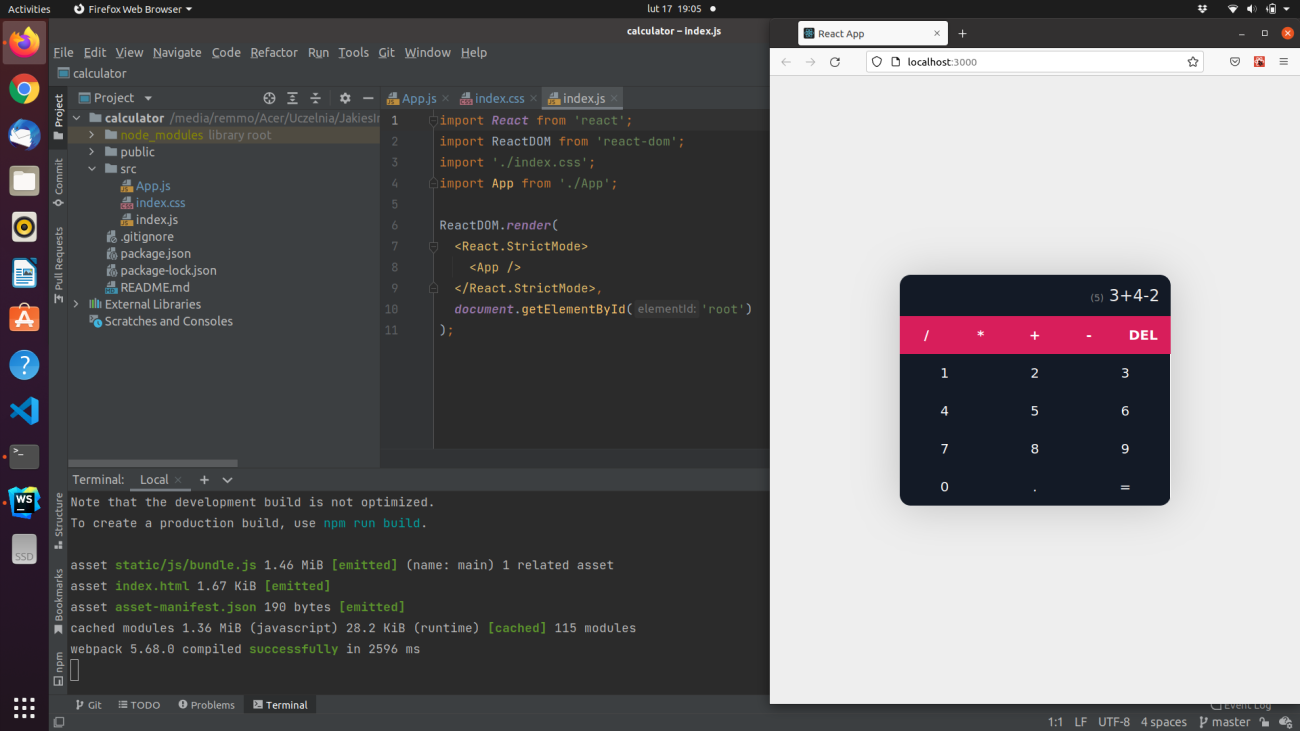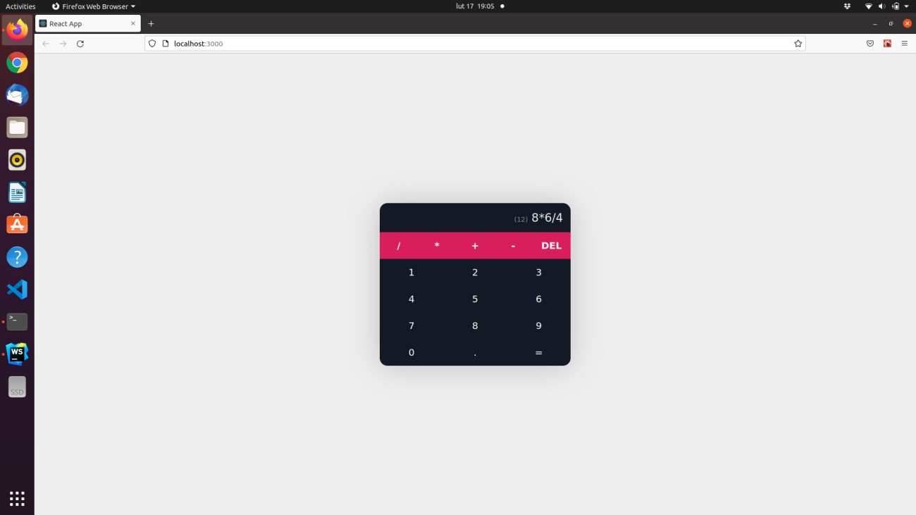 Calculator My first application made with React. Simple calculator that provides every basic operation in math. Let's see this app in action! And look at the screenshots: