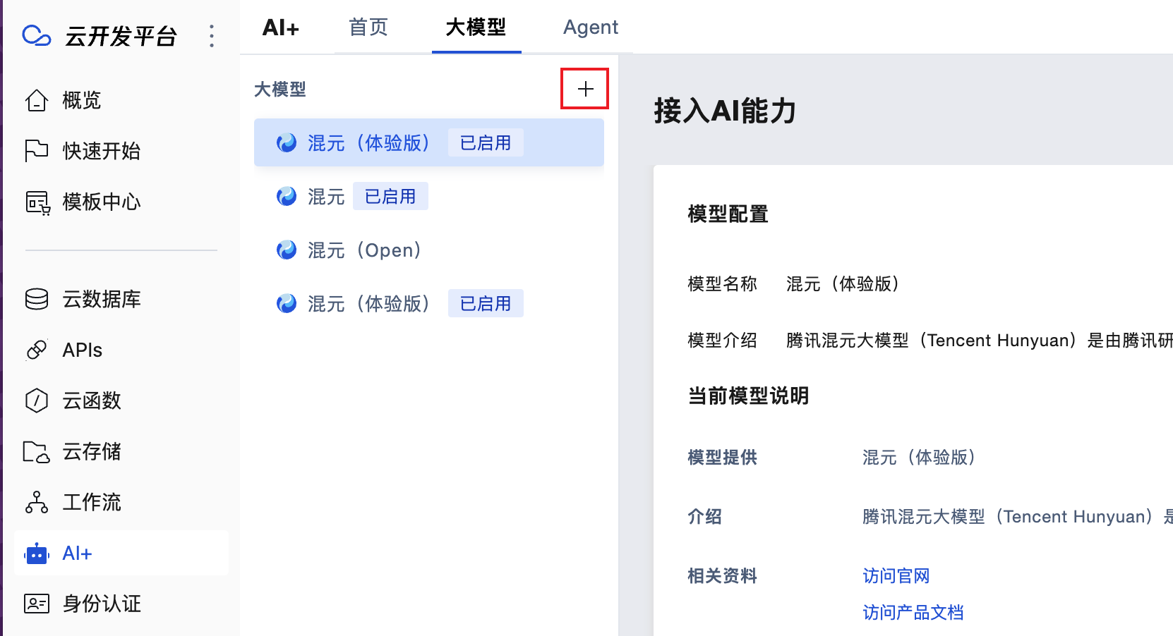 如已开通微信云开发服务,请跳转至云开发平台创建AI服务。