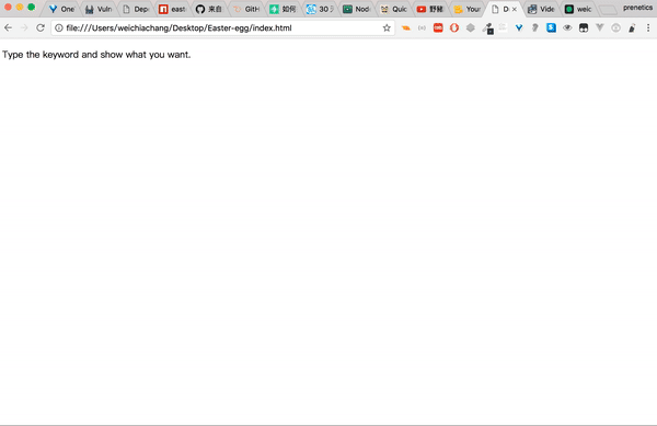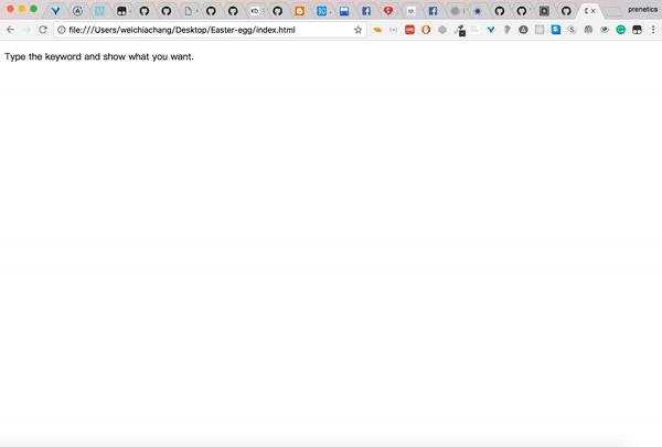 <script src="https://rawgit.com/WeiChiaChang/Easter-egg/master/easter-eggs-collection.js"></script>Or using npm: