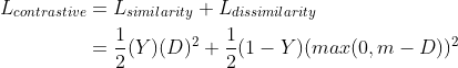 This project follows Hadsell-et-al.'06 [1] by computing the Euclidean distance on the output of the shared network and by optimizing the contrastive loss (see paper for more details). The contastive loss is defined as follows