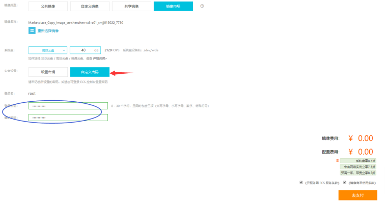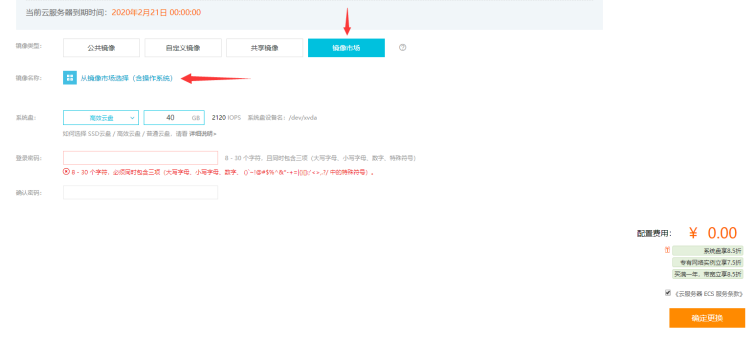 6.镜像类型选择:镜像市场,然后点击从镜像市场选择(含操作系统)