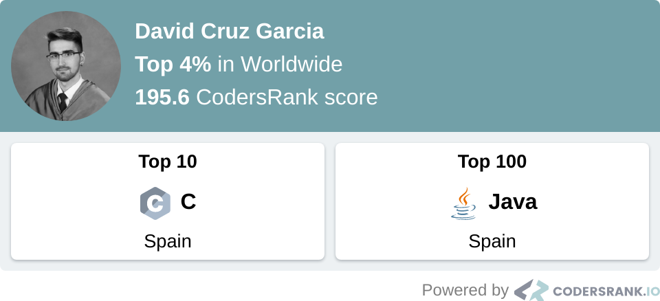 Hi there, im David About me Computer Engineering Student at USAL. 📚 🔭 I’m currently working on ROS and robots 🌱 I’m currently learning WebDev/ROS 🤔 I’m looking for help with WebDev Stats📊 Tecnologies Main Others Learning