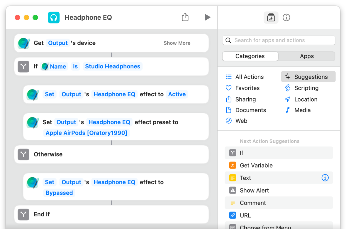 Create a shortcut named Headphone EQ. For example: