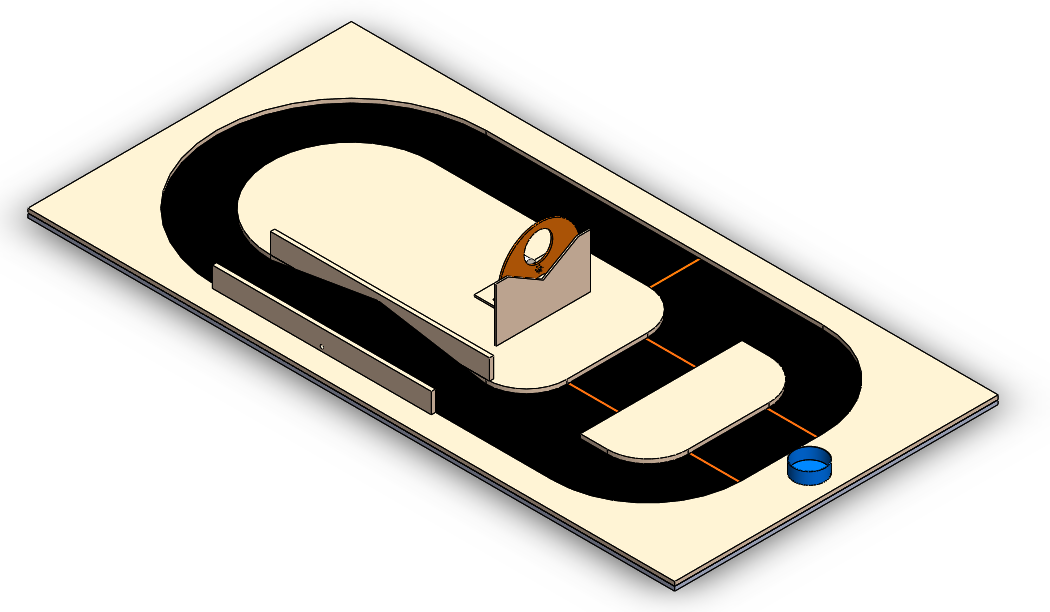 La compétition de la machine consistait à concevoir un robot autonome, alimenté par l'énergie humaine, qui traverse un parcours accidenté et lance des projectiles à travers une cible.