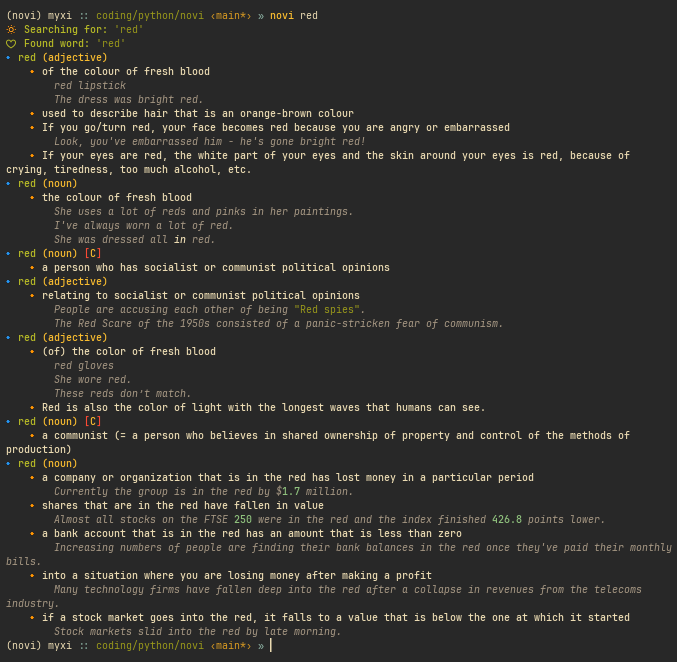 pip install ./novipip install git+<REPO URL>@mainusage: novi [-h] [--debug] [-V] [words ...]