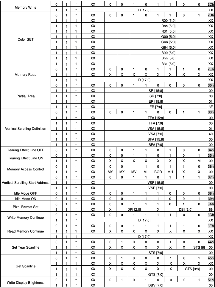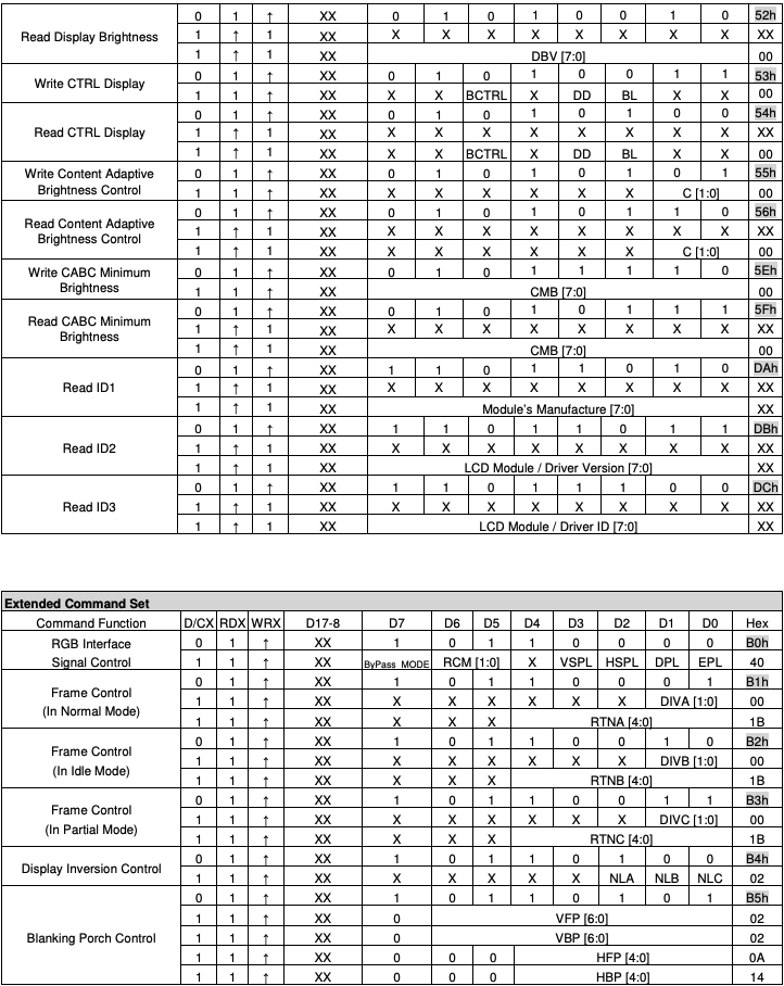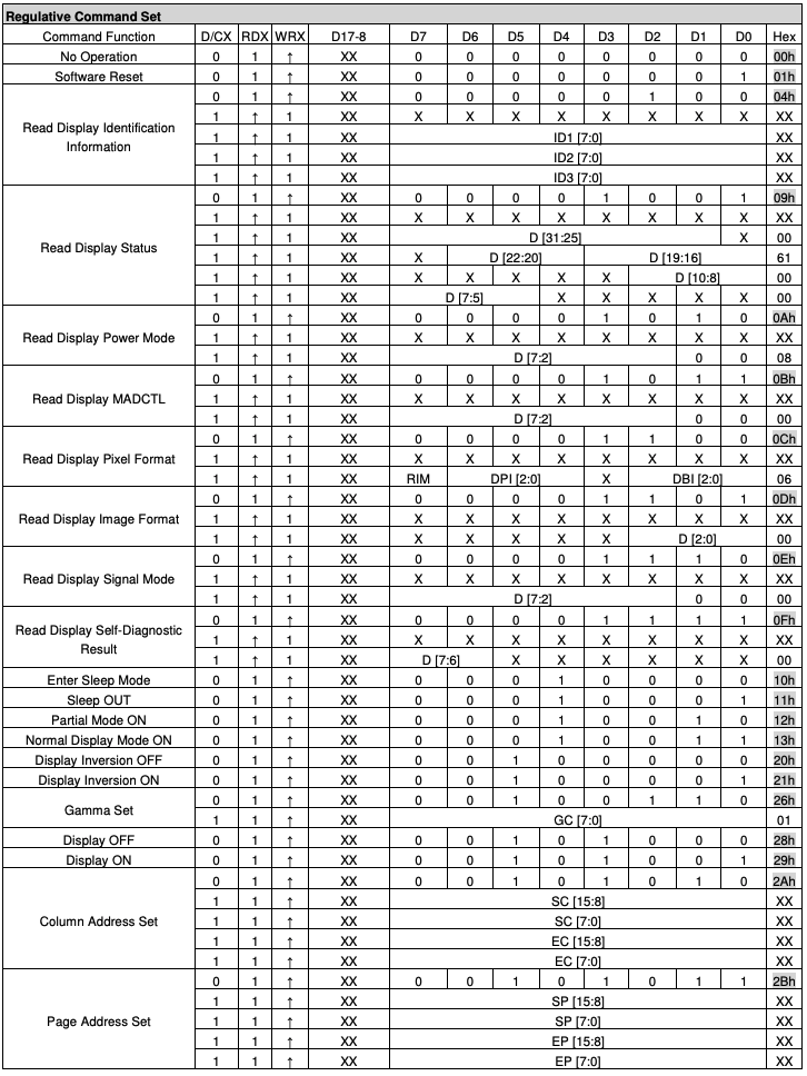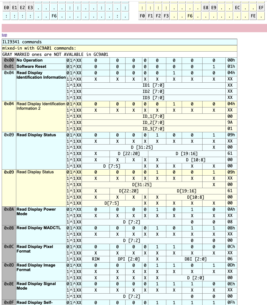 Posted at 2021-10-01 by @allObjects ILI9341 Command List (and datasheet) attached. Since searching in attachments (imgs) is not that great, I'm instrumentalizing the data copied from the .pdf and get myself a little tooling going... you may notice where it is going... (done up to line #32 far for the GC9A01 commands, more and code will follow in a bit).