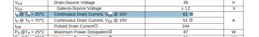 I've attached two screenshots of the datasheet that confuse me with what I'm being told about Rds(on) and this maximum peak current... The Rds says the transistor can only handle 15A at 10V but the maximum specs say it can handle 61A at 10V... what does it mean! LOLAttachments: |