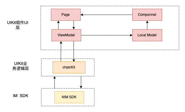 IM UIKit 采用 (Model–View–ViewModel)MVVM 架构模型,实现 UI 展示与业务逻辑开发的相互独立。
