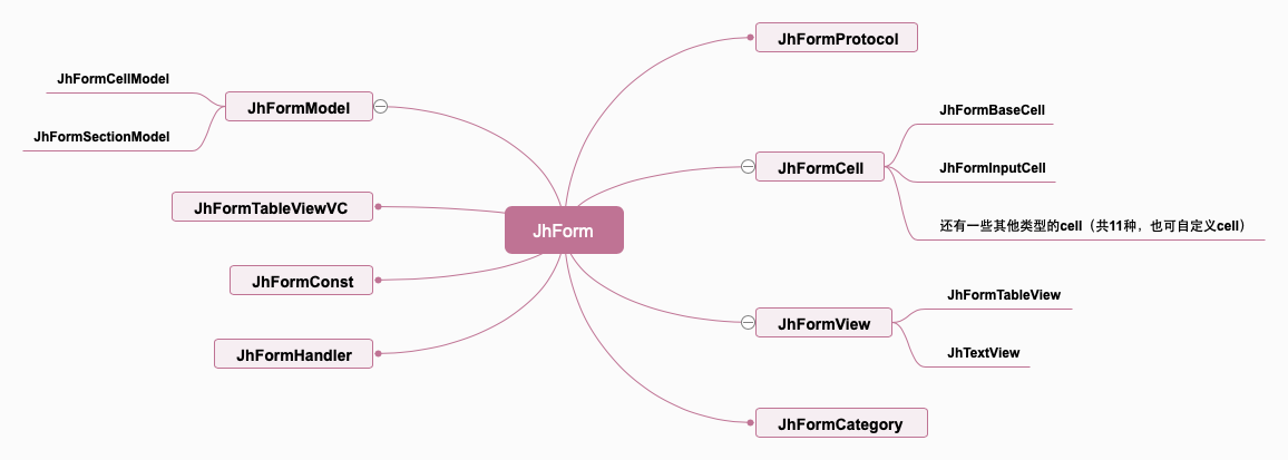 - JhFormCell:继承JhFormBaseCell,遵循JhFormProtocol,根据JhFormModel实现不同cell