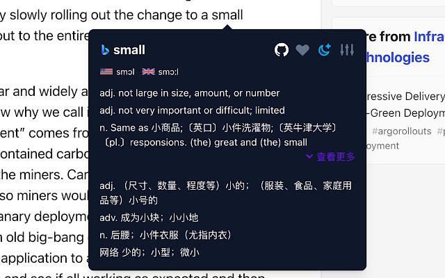 小划词 简单、高效和好看的划词翻译浏览器插件 下载 谷歌商店 火狐商店 预览 调试 # chrome pnpm dev # firefox npx plasmo dev --target=firefox-mv2 改进及建议 请提交 issue