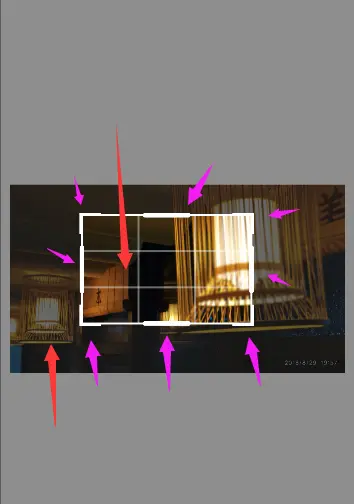 - 2、手势调整裁剪框的边角、四周边。裁剪控件可以拖动的边界为上图的紫色箭头区域,并且有一个点击所在点区域的周边也可以正常去控制边界的拖动,说明有一个动态的范围