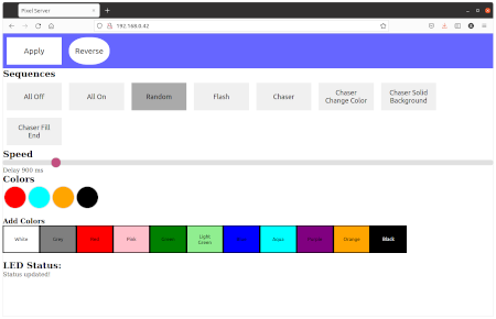 Wireless control of PixelStrips or NeoPixels using a web graphical interface running on a Raspberry Pi.
