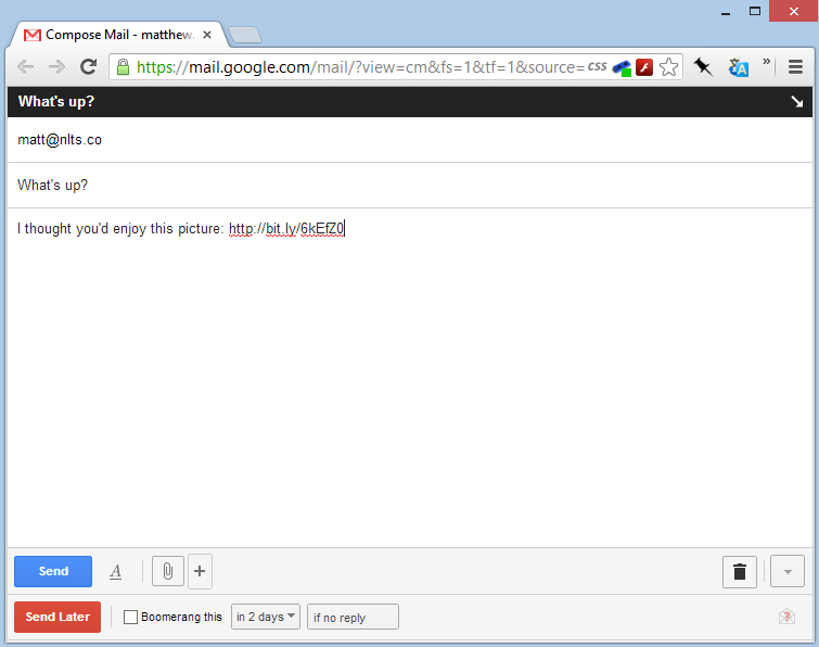 Compose an email in Chrome's address bar.