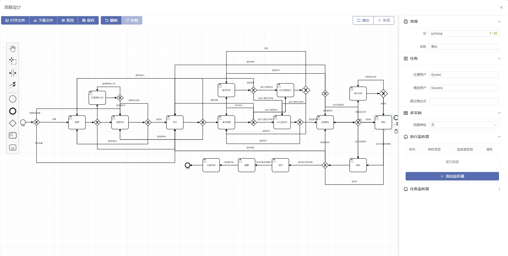 工作流程内置流程设计器、表单设计器、事项管理器三大工具,支持中国式流程的自由定义,具备细颗粒度的事项分类。