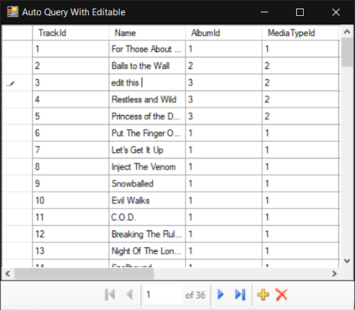dataGridViewPaging.DbRequestHandler = DbRequestHandlerHelper.Create(new SQLiteConnection("Data Source=chinook.db"), "tracks");