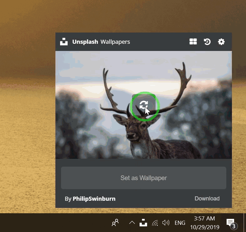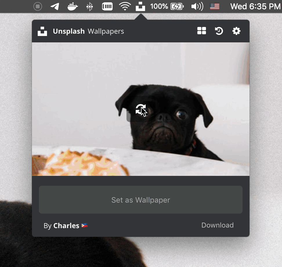 A menubar application for Mac, Windows and Linux that brings stunning wallpapers from Unsplash right to your desktop. Works on macOS 10.12+, Windows 10+ and Linux.