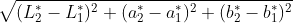 L for lightness, A for Value on the green -> red axis, B for Value on the blue -> yellow axis. In the 3D LAB space, the Euclidean distance between two colours corresponds almost exactly to the difference as seen by the human eye.