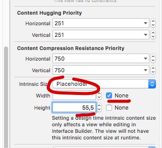 - Change the "Intrinsic Size" drop-down from "Default (System Defined)" to "Placeholder."