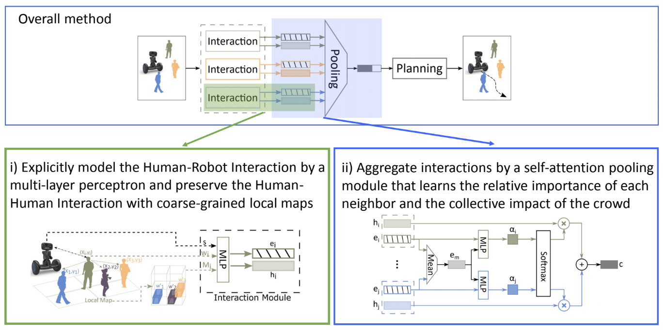 This repository is organized in two parts: gym_crowd/ folder contains the simulation environment and crowd_nav/ folder contains codes for training and testing the policies. Details of the simulation framework can be found here. Below are the instructions for training and testing policies, and they should be executed inside the crowd_nav/ folder.