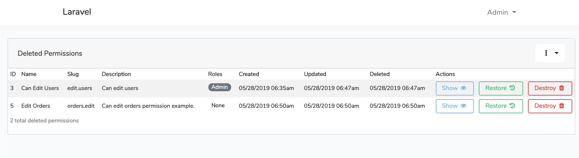 | Makes use of Laravel's Soft Delete Structure |