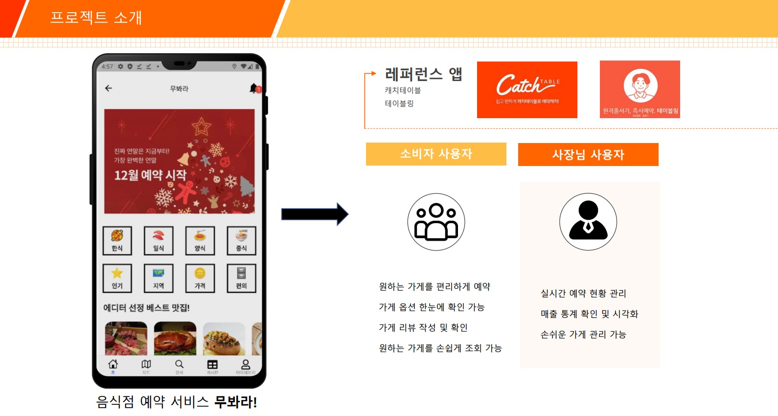 부산의 맛집을 손쉽게 검색, 추천, 원격 줄서기 기능을 포함한 음식점 예약 플랫폼