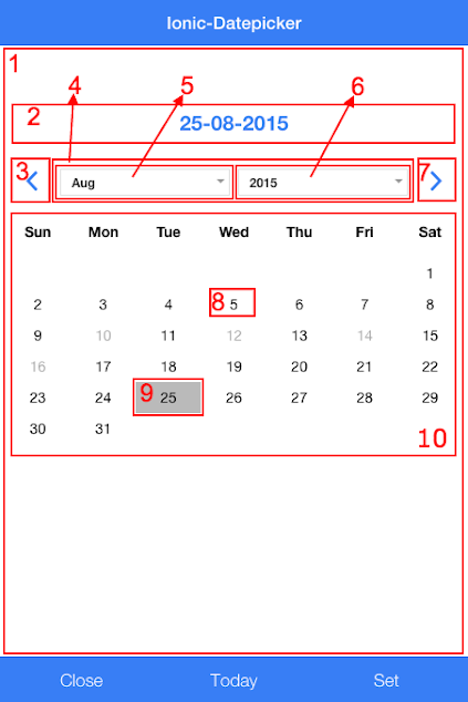 a) ionic-datepicker is the directive, to which we can pass required vales.